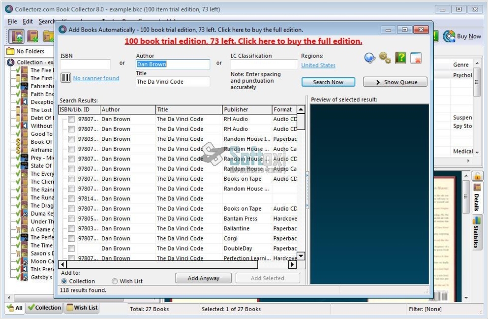 Organize your book collection in no time at all. Download full book details and cover art. Just enter ISBNs or scan barcodes. Browse your book database in cover flow. Sort lists any way you want. Find books quickly and easily.Organize your book database and wish list. Never buy dupes again.