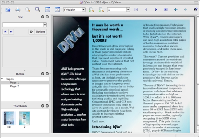 DjView4 is a new portable DjVu viewer and browser plugin. Entirely based on the public djvulibre api. Entirely written in portable Qt4. Works with Qt/X11, Qt/Mac, and Qt/Windows. Continuous scrolling of pages. Side-by-side display of pages. Ability to specify a url to the djview command. All plugin and cgi options available from the command line.