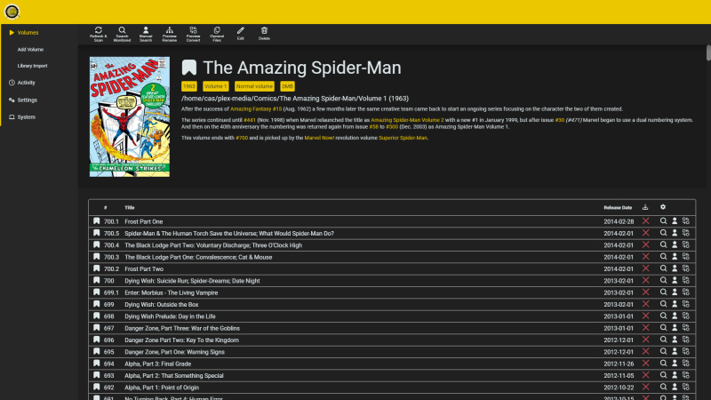 Kapowarr is a software to build and manage a comic book library, fitting in the *arr suite of software. You can add volumes, map them to a folder and start managing. Allows to download, rename, move and convert issues of the volume (including TPB's, One Shots, Hard Covers and more). Installing Kapowarr can be done via Docker or on top of Python.