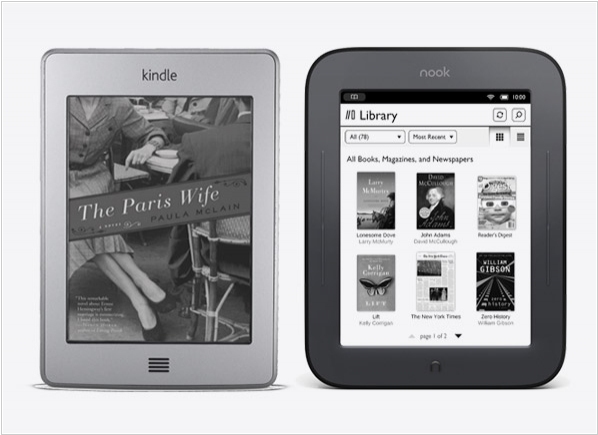 Barnes & Noble has lowered the Nook Simple Touch price from $99 to $79. This entry-level model competes with the $69 Kindle 5. Both devices feature 6-inch black-and-white displays, Wi-Fi connectivity and 2 GB of storage. The Nook is somewhat wider, thicker and heavier than the Kindle, but it excels with two months of battery life, doubling the Kindle's one month. Additionally, the Nook Simple Touch includes a microSD card slot and comes with a charger (unlike the Kindle 5). Furthermore, the Kindle displays ads on its screensaver (without ads and with a charger, it costs $99). However, the device price may become less significant in the competition. The primary factors are the availability and pricing of books.