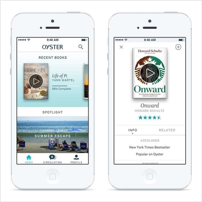 Oyster offers unlimited access to over 100,000 books for $9.95 a month, with new titles added all the time. We are currently rolling out invitations for iPhone and iPod Touch. We created Oyster to evolve the way people read and to create more of the special moments that only books can offer. From anywhere a mobile device can go—a bustling subway car, a quiet coffee shop, or lost at sea with a Bengal tiger—our mission is to build the best reading experience, one that is both communal and personal, anytime, anywhere.
