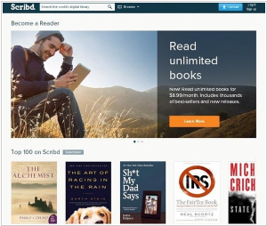 Scribd, the well-known document publishing and sharing service (formerly dubbed YouTube for documents), now aims to become Netflix for e-books. It is launching a subscription service that allows users to pay $8.99 per month for unlimited access to e-books and other written materials. This price is lower than the newly introduced mobile e-book platform Oyster ($9.99 per month) and eReatah, which operates more like a book club with plans starting at $16.99 per month. The book catalog is also similar, with Scribd relying on the same publishers as Oyster, including HarperCollins, Kensington, Red Wheel/Weiser, Rosetta Books, Sourcebooks and Workman. However, unlike Oyster, which appears to be the main competitor, Scribd is available on iPhone, iPad, Android devices and in web browsers.