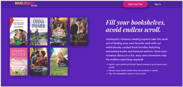 Harlequin (a leading publisher of commercial fiction and narrative nonfiction) has launched a new subscription service Harlequin Plus that provides users access to both digital books and print titles. It is a completely distinctive service that stands out in the market. The service is available now in the United States and costs $14.99 per month. Content can be accessed via the website and apps for Android and iOS. A free 7-day trial is offered if you want to try it out. A subscription to Harlequin Plus grants users four entertainment options, including curated bundles of new book releases, an ebook library, romantic movies and casual games. One of the most appealing features is the Book bundles; each month, subscribers can choose either an ebook bundle delivered instantly or physical copies sent to their homes.