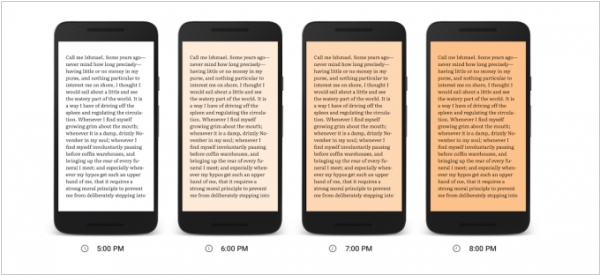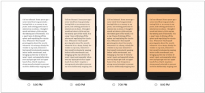 If you’re a night reader on your mobile device, you know it’s difficult to get tired with the bright screen glaring at your eyes. This isn’t an issue with physical books, as you can use a soft light to create a relaxing atmosphere. Google Play Books aims to replicate that softer experience with a feature called “Night Light.” As the evening progresses, it gradually filters out the blue light from your screen, replacing it with a warm, amber hue as the sun sets, to make reading more comfortable. Night Light automatically adjusts based on the amount of natural sunlight outside according to the time of day, providing the ideal warmth and brightness. This color adjustment is easier on your eyes and significantly enhances reading in low-light conditions.