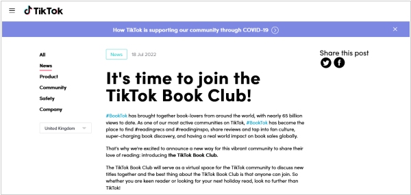 2022. TikTok launches a new Book Club