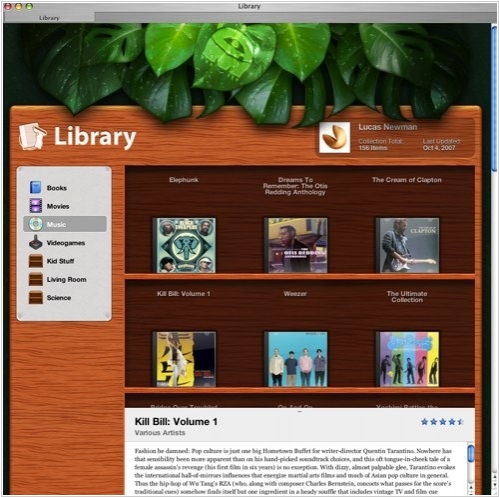 Delicious Library. There are over a hundred new features in DL2, along with hundreds more bug fixes. Specifically, the software introduced an HTML export capability. Clicking an item in this web-based library will show a pop-up at the bottom of the browser containing description details that the user has entered in DL2 or retrieved from Amazon, as well as the user's rating of the media. It's reasonable to assume that this display will be customizable, allowing the user to choose whether information like item ratings or even sections of the library appear in exported HTML sites. As if sharing your library on the web isn't enough, the sites that DL2 generates are very iPhone-compatible. This includes the various sections of the library and the pop-up informational display, though there are (naturally) slight UI variations.