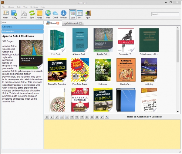 Alfa Ebooks Manager 9. It's built on the enhanced engine that allows it to work faster and more reliable. They have also implemented the new internal reader with search, notes and progress bar. It also enables basic knowledge management - when reading a book you can highlight and save text blocks or quotes and then access them in a book card, click on them and open the appropriate page in a book. You can also add your comments to these knowledge blocks. Besides the program interface has become more polished and suitable. You can customize the design according to your taste and select between multiple bookshelf templates. The web-reader and the whole web interface also received a beautiful facelift. Among other new features - better audio-book import and management.