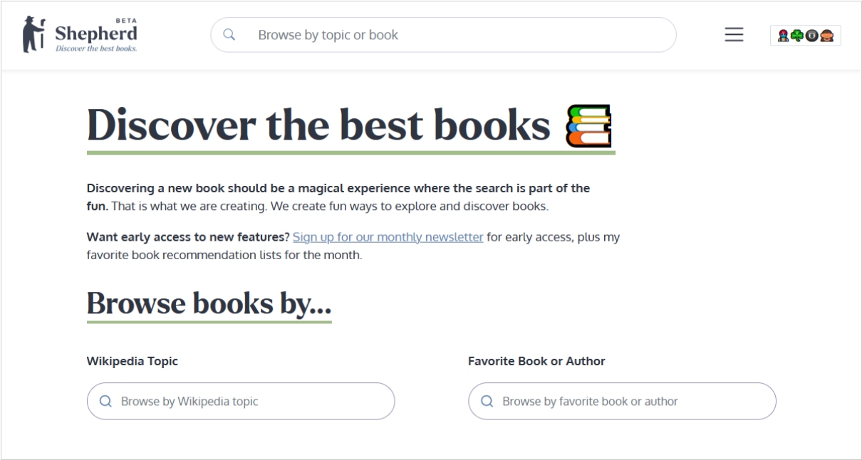 Discovering a new book should be a magical experience where the search is part of the fun. Shepherd creates fun ways to explore and discover books.